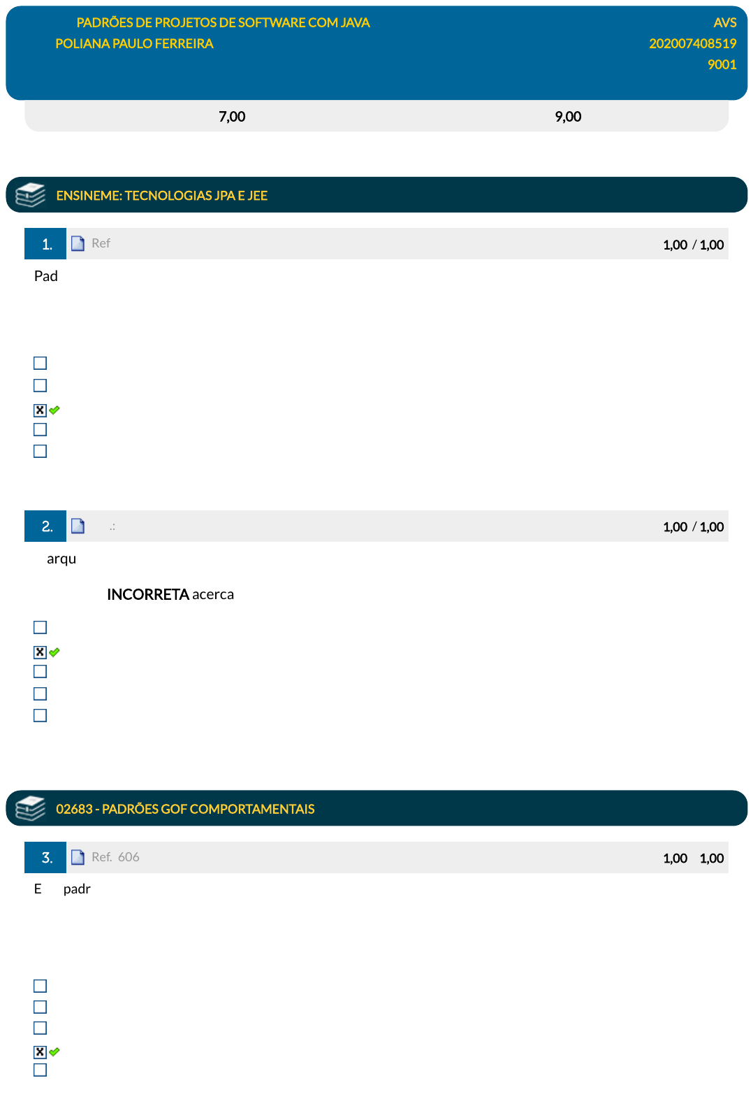 Avaliação: 7,00 pts Nota SIA: 9,00 pts