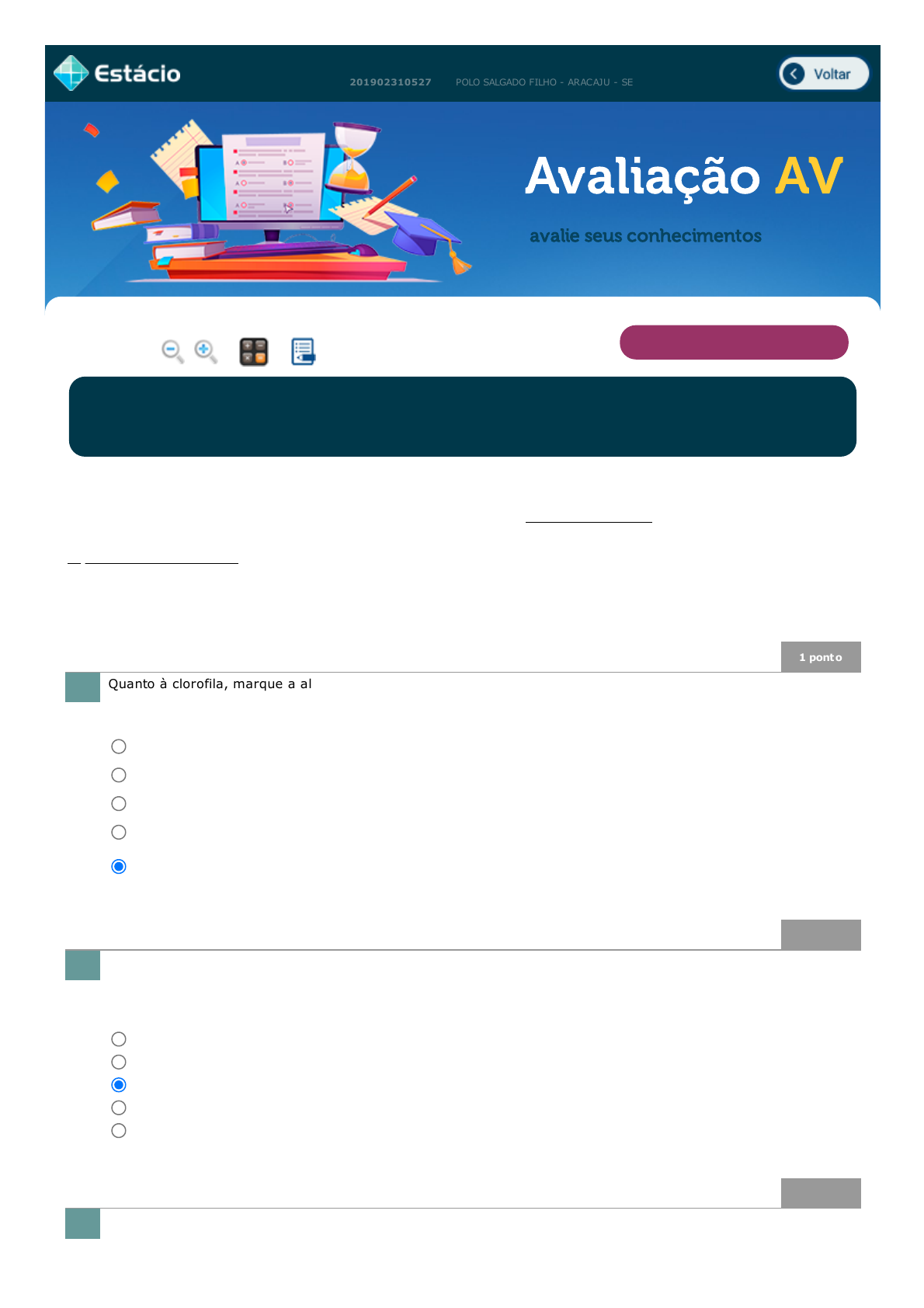 27/05/2022 22:45 EPS https://simulado.estacio.br/alunos/ 1/4 TATIANE PEREIRA SANTOS ROCHA Avaliação AV 201902310527 POLO SALGADO FILHO - ARACAJU - SE avalie seus conhecimentos 1 ponto Quanto à clorofila, marque a alternativa incorreta: (Ref.: 201907590153) 1 ponto Qual das reações de obtenção/modificação de carboidratos é necessária para a obtenção de todos antibióticos aminoglicosídeos naturais: (Ref.: 201907590155) 1 ponto Sabemos que a origem do ácido chiquímico no metabolismo primário está na união estrutural de uma molécula de D-eritrose-4-fosfato com uma molécula de fosfoenolpiruvato (PEP). Dessa maneira, marque a opção que indique as possíveis vias do metabolismo primário de onde esses intermediários metabólicos provêm. Lupa Calc. Notas VERIFICAR E ENCAMINHAR Disciplina: SDE4503 - FARMACOGNOSIA BÁSICA Período: 2022.1 EAD (G) Aluno: TATIANE PEREIRA SANTOS ROCHA Matr.: 201902310527 Turma: 9001 Prezado(a) Aluno(a), Responda a todas as questões com atenção. Somente clique no botão FINALIZAR PROVA ao ter certeza de que respondeu a todas as questões e que não precisará mais alterá-las. A prova será SEM consulta. O aluno poderá fazer uso, durante a prova, de uma folha em branco, para rascunho. Nesta folha não será permitido qualquer tipo de anotação prévia, cabendo ao aplicador, nestes casos, recolher a folha de rascunho do aluno. Valor da prova: 10 pontos. 1. São pigmentos localizados principalmente nos cloroplastos das folhas das plantas. São moléculas que pertencem à classe das porfirinas, são complexos derivados delas, tendo como átomo central o magnésio (Mg). Podem ser de mais de um tipo como a, b, c e d. Compõem os centros de reação formados por um complexo de moléculas de clorofila unidas à proteína de ligação a clorofila a e b, e moléculas de quinona. É um pigmento vegetal que absorve luz da região verde do espectro da luz solar, refletindo a luz da região do verde. 2. Interconversão aldose-cetose Transferência de unidades C2 e C3 Reações de transaminação Reações de oxirredução Epimerização 3. javascript:voltar(); javascript:diminui(); javascript:aumenta(); javascript:calculadora_on(); javascript:anotar_on(); 27/05/2022 22:45 EPS https://simulado.estacio.br/alunos/ 2/4 (Ref.: 201907639997) 1 ponto Assinale a alternativa referente às principais vias do metabolismo secundário. (Ref.: 201907626595) 1 ponto A Digitoxina, fármaco cardiotônico e antiarrítmico, é um glicosídeo cardiotônico derivado de Digitalis purpurea e Digitalis lanata. Ao observar a estrutura dela, assinale a alternativa que contém as correlações corretas com as porções estruturais assinaladas: Fonte: própria autoria. (Ref.: 201907764600) 1 ponto Alguns carotenos apresentam ciclização das extremidades da cadeia, havendo três sistemas alcenos cíclicos diferentes: os sistemas de anel β-, γ- ou ε. Esses ciclos podem conter substituintes oxigenados como as hidroxilas da estrutura da luteína: Via das pentoses fosfato e glicólise Via das pentoses fosfato e ciclo de Krebs Fotossíntese e ciclo de Krebs Via das trioses fosfato e glicólise Via das pentoses fosfato e via das trioses fosfato 4. Via do Acetato, a Via do Chiquimato, Ciclo de Calvin e Via da Desoxixilulose fosfato Via do Acetato, Ciclo de Krebs, Via do Mevalonato e Via da Desoxixilulose fosfato Via do Acetato, Via do Chiquimato, Via do Mevalonato e Ciclo das pentoses-fosfato Via do Acetato, Via do Chiquimato, Via do Mevalonato e Via da Desoxixilulose fosfato Via do Chiquimato, Via do Mevalonato, Glicólise e Via da Desoxixilulose fosfato 5. I - anel lactônico bufadienolídeo; II - genina; III - porção osídica I - porção osídica; II - genina; III - anel lactônico bufadienolídeo I - anel lactônico cardenolídeo; II - genina; III - porção osídica I - porção osídica; II - genina; III - anel lactônico cardenolídeo I - genina; II - porção osídica; III - anel lactônico cardenolídeo 6. 27/05/2022 22:45 EPS https://simulado.estacio.br/alunos/ 3/4 Fonte: própria autoria. Tais carotenos oxigenados são pigmentos amarelos que formam banda amarela no início da cromatografia de pigmentos de folhas. Tal propriedade dá a essas substâncias uma outra nomeclatura. Que nomenclatura é essa? (Ref.: 201907764599) 1 ponto Assinale a alternativa que apresenta plantas indicadas para o tratamento de problemas respiratórios. (Ref.: 201907595188) 1 ponto Assinale a alternativa que apresenta um exemplo de planta indicada como auxiliar na cicatrização. (Ref.: 201907595187) 1 ponto A cafeína, encontrada em espécies utilizadas para preparação de bebidas como chá, café e cola, tem efeito estimulante e é amplamente consumida. Sobre a cafeína, leia as afirmativas abaixo. I. Entre as três metilxantinas, é a que possui maior atividade estimulante II. De 50 a 100 mg de cafeína produzem um estímulo que resulta em maior estado de alerta III. Em doses altas, pode abolir o efeito de sedativos como os barbitúricos. De acordo com o exposto, assinale a alternativa correta. (Ref.: 201908448972) Xantofila Retinol Licopeno Clorofila Cromóforo 7. Podophyllum hexandrum Royle; Arctostaphylos uva-ursi (L.) Spreng Pelargonium sidoides DC; Passiflora alata Curtis Pelargonium sidoides DC; Mikania glomerata Sprengel Cynara scolymus L.; Mikania glomerata Sprengel Hamamelis virginiana L.; Arctostaphylos uva-ursi (L.) Spreng 8. Cynara scolymus L Hamamelis virginiana L Maytenus ilicifolia Mart. ex Reissek Capsicum spp Ginkgo biloba L 9. Somente as afirmativas I e III estão corretas. Somente a afirmativa III está correta. Somente a afirmativa I está correta. Somente as afirmativas II e III estão corretas. Somente a afirmativa II está correta. 27/05/2022 22:45 EPS https://simulado.estacio.br/alunos/ 4/4 1 ponto (Adaptado de: FUNCAB - PC-ES - Perito Bioquímico Toxicologista - 2013) Países andinos, fronteiriços, produzem a cocaína - um alcaloide derivado de folhas da planta 