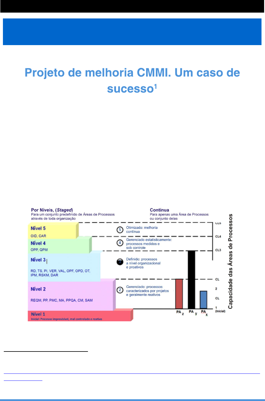 1 DD076 – GESTÃO SEM DISTÂNCIAS CASO PRÁTICO Durante as últimas décadas, o desenvolvimento de software evidenciou a necessidade de uma base na qual ordenar e sistematizar os processos de desenvolvimento e gestão dos projetos. Durante mais de duas décadas, o DoD dos EUA financiou numerosos estudos e apoiou a formação do SEI (Software Engineering Institute, Carnegie Mellow University) para desenvolver modelos com esse objetivo. Disso surgiu o modelo CMM (Capability Maturity Model) para o software e foi adotado pela indústria, convertendo-se no padrão mais utilizado. Surgiram múltiplos modelos: SSE–CMM, SW–CMM, IPD-CMM, P-CMM, SA-CMM, S3-CMM, etc. O CMMI é a evolução do CMM (Figura 1). É um conjunto de Boas Práticas que são publicadas no que se denomina modelos. Em 2002, foi lançado o modelo CMMI Versão 1.1. O modelo atual é a versão CMMI 1.2. Integra as disciplinas de software e sistemas em um marco de melhorias aos processos. Figura 1: O CMMI: uma atualização do CMM. 1 Caso Prático construído a partir da apresentação de Cecilia Boggi em millenniunM3: Retirado de http://www.portalanpedsul.com.br/admin/uploads/2004/Poster/Poster/04_53_48_AS_NOVAS_TECNOLOGIAS_E_ A_EDUCACAO.pdf http://www.portalanpedsul.com.br/admin/uploads/2004/Poster/Poster/04_53_48_AS_NOVAS_TECNOLOGIAS_E_A_EDUCACAO.pdf http://www.portalanpedsul.com.br/admin/uploads/2004/Poster/Poster/04_53_48_AS_NOVAS_TECNOLOGIAS_E_A_EDUCACAO.pdf 2 CASO PRÁTICO Seus principais componentes são: 1. Área de Processos: é um conjunto de práticas relacionadas que são executadas coletivamente para conquistar um conjunto de objetivos, incluindo o que deve ser feito (práticas específicas), e o resultado antecipado (objetivos específicos). 2. Objetivos: componentes requeridos do modelo e que são utilizados nos appraisal para determinar se uma dada determinada Área de Processos é satisfeita. a) Objetivos Específicos, (SG), são aplicados somente a uma Área de Processos e descrevem o que deve ser implantado para satisfazer o propósito da Área. b) Objetivos Genéricos, (GG), são aplicados a múltiplas Áreas de Processo em um nível particular de capacidade ou nível de maturidade. 3. Práticas: componentes esperados do modelo (espera-se que as organizações as executem) a) Práticas Específicas, (SP), uma atividade que é importante para poder alcançar um objetivo específico ao qual está mapeada. b) Práticas Genéricas, (GP), uma atividade que acarreta um objetivo genérico ao qual está mapeada. A Figura 2 nos mostra uma visão do modelo CMMI por níveis. Figura 2: Estrutura do CMMI por níveis. A organização MillenniuM3 é uma empresa líder em Serviços de Consultoria de IT, Desenvolvimento de Software, Desmobilização de Tecnologia Microsoft e Staffing, com escritórios na Argentina e negócios na América Latina, Estados Unidos e Europa. Fundada em 1998, a missão da companhia consiste em desenvolver soluções de valor agregado que permitam a seus clientes a execução de estratégias comerciais bem-sucedidas sobre a base da inovação e do uso da tecnologia informática. Conta com uma equipe de mais de 150 profissionais, oferecendo serviços em diferentes tecnologias. Em uma das análises da direção chegam a ser definidos os seguintes objetivos estratégicos: 3 CASO PRÁTICO Consolidar uma empresa de serviços. Desenvolvimento/manutenção de software. Desenvolvimento offshore – Saída para o exterior. Ser competitivos otimizando custos. Ser competitivos através de performance e qualidade. Para cumprir de maneira adequada estes objetivos, a empresa aplicou o CMMI. A fase de preparação incluiu: implementação da PMO, definição de metodologia de projeto, divisão de funções na Software Factory, implantação da metodologia nos projetos reais. Foi concebido um Projeto de Melhoria que contou com os seguintes aspectos: Avaliação Inicial. Definição das melhorias. Estratégia das melhorias. Detalhe das atividades. Atribuição de Recursos e Tempos. Estrito acompanhamento do plano. Esquema de capacitação. Políticas de Implantação. Importante envolvimento dos níveis superiores. Atribuição de recursos valiosos ao projeto. Responsável por Área de Processo. Responsável por Projeto (classificação de evidências). Trabalho em Equipe (todos os setores envolvidos). Reuniões de acompanhamento semanais. Capacitação em Modelo CMMI e Fwk M3. Seleção de Ferramentas. No processo de aplicação do CMMI, também foram identificados alguns obstáculos, dos quais os mais significativos foram: Obstáculos 4. Projetos de Manutenção: a) Muitas OT muito pequenas. b) Não inclui todas as áreas (ex.: Exemplo CM). c) Cultura dos Clientes. d) Importância do Tailoring. 5. Envergadura dos Projetos: a) Flexibilidade para a avaliação de evidências. 6. Metodologias Ágeis: a) Resistência à mudança de algumas equipes. No entanto, o projeto continua avançando até alcançar os seguintes resultados: Melhorou a relação com os Clientes. Melhorou a Qualidade dos Serviços e Produtos. 4 CASO PRÁTICO Melhorou a rentabilidade dos projetos. Melhorou a comunicação entre as equipes. Diminuiu a rotação de pessoal. Melhores métricas para as decisões. Instruções para o desenvolvimento da atividade A partir da leitura do Caso Prático anterior, responda as seguintes perguntas: O que é CMM? Uma vez que a empresa alcançou os resultados descritos, qual seria o próximo passo a ser dado em relação ao CMMI? Mencione, se existirem, as principais diferenças entre os modelos do CMM estudado e o modelo CMMI. Descreva em que consistem os modelos de maturidade de implantação de estratégias de externalização através do uso de tecnologias da informação e capacitação. Analise o modelo de capacidade CMMI aplicado à empresa a partir dos resultados obtidos nesta. Explique brevemente a relação estabelecida entre o CMMI e PMBOK. Elabore sua resposta a estas questões baseando-se no est