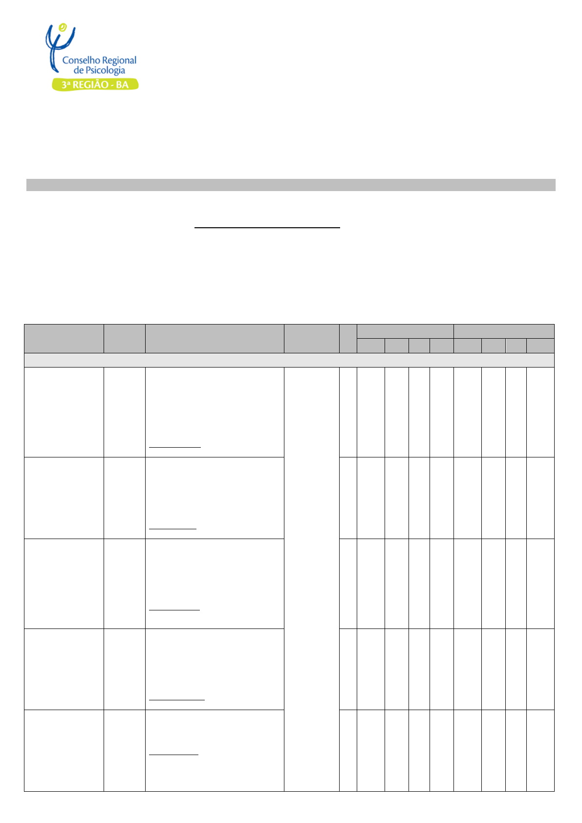 1 CONSELHO REGIONAL DE PSICOLOGIA DA BAHIA - 3ª REGIÃO EDITAL Nº 24, DE 27 DE NOVEMBRO DE 2024 *conforme Retificação I. A Presidenta do Conselho Regional de Psicologia da Bahia - 3ª Região - CRP-03, no uso de suas atribuições e com fundamento no artigo 37, inciso II, da Constituição Federal Brasileira de 1988, torna pública a realização de Concurso Público destinado ao preenchimento de vagas de seu quadro de pessoal e formação de cadastro reserva, mediante as condições estabelecidas neste Edital. 1. DAS DISPOSIÇÕES PRELIMINARES 1.1 O Concurso Público será regido por este Edital, por seus anexos, avisos, atos complementares e eventuais retificações, sendo a execução de responsabilidade do Instituto Consulplan de Desenvolvimento, Projetos e Assistência Social, site: www.institutoconsulplan.org.br e telefone 0800-100-4790. 1.1.1 À Comissão constituída pela RESOLUÇÃO CRP-03 BA Nº 07/2024 caberá o acompanhamento e fiscalização do Concurso Público. 1.2 O Concurso Público se destina ao provimento de vagas para nível superior e médio, além de formação de cadastro reserva para atendimento a novas vagas que vierem a surgir durante sua validade. 1.3 A denominação dos cargos, os requisitos exigidos, o vencimento básico, a carga horária semanal e o número de vagas para ampla concorrência (AC), para as reservas às pessoas com deficiência (PcD) e para negras(os) (N), bem como para cadastro de reserva (CR), são discriminados no quadro a seguir: Cargo Cidade de Lotação Requisitos Exigidos Vencimento Básico / Benefícios CH (h/s) VAGAS IMEDIATAS CADASTRO DE RESERVA AC PcD N Total AC PcD N Total Nível Superior Analista Organizacional / Agente de Controle Interno Salvador Ensino Superior Completo em Ciências Contábeis, Administração, Direito e/ou Engenharia e/ou áreas correlatas, abaixo indicadas (cursos reconhecidos pelo Ministério da Educação); Registro no respectivo Conselho de Classe nos casos que haja obrigatoriedade em razão da função que será exercida. Áreas correlatas: Economia, Engenharia, Gestão Pública, Processos Gerenciais. R$ 4.394,00 + R$ 908,60 (vale alimentação) e Plano de assistência médica e odontológica 30 - - - - 2 - 1 3 Analista Organizacional / Arquivo Salvador Ensino Superior Completo em Arquivologia e/ou áreas correlatas, abaixo indicadas (cursos reconhecidos pelo Ministério da Educação); Registro no respectivo Conselho de Classe nos casos que haja obrigatoriedade em razão da função que será exercida. Áreas correlatas: Biblioteconomia, Ciência da Informação. 30 1 - - 1 2 - 1 3 Analista Organizacional / Analista de Compras e Contratos Salvador Ensino Superior Completo em Administração, Economia, Ciências Contábeis, Direito e/ou áreas correlatas, abaixo indicadas (cursos reconhecidos pelo Ministério da Educação); Registro no respectivo Conselho de Classe nos casos que haja obrigatoriedade em razão da função que será exercida. Áreas correlatas: Engenharia, Gestão de Serviços Jurídicos e Notariais, Gestão Pública. 30 1 - - 1 2 - 1 3 Analista Organizacional / Analista Financeiro Salvador Ensino Superior Completo em Administração, Economia, Ciências Contábeis e/ou áreas correlatas, abaixo indicadas (cursos reconhecidos pelo Ministério da Educação); Registro no respectivo Conselho de Classe nos casos que haja obrigatoriedade em razão da função que será exercida. Áreas correlatas: Gestão Financeira; Processos gerenciais. 30 1 - - 1 2 - 1 3 Analista Organizacional / Analista TI Salvador Ensino Superior Completo em cursos relacionados à área de TI, e/ou áreas correlatas, abaixo indicadas (cursos reconhecidos pelo Ministério da Educação). Áreas correlatas: Engenharia de Software; Engenharia da Computação; Ciência da Computação; Sistemas de Informação; Análise e Desenvolvimento de Sistemas; Gestão em Tecnologia da Informação. 30 2 - - 2 4 1 1 6 CONSELHO REGIONAL DE PSICOLOGIA DA BAHIA - 3ª REGIÃO EDITAL Nº 24, DE 27 DE NOVEMBRO DE 2024 2 SIGLAS: CH = Carga Horária; h/s = horas semanais; AC = ampla concorrência; PcD = pessoas com deficiência; N = negras(os). 1.4 Além do salário básico, o CRP-03 oferecerá às(os) candidatas(os) admitidas(os) por meio deste concurso público, desde que preenchidos os requisitos legais, benefícios previstos em sua legislação de pessoal, conforme a seguir descrito: a) Vale Alimentação, no valor de R$ 908,60 por mês; e b) Plano de assistência médica e odontológico. 1.4.1 Os benefícios são atrelados ao cumprimento das exigências e requisitos previstos em lei ou em ato normativo do CRP-03. 1.5 A lotação das(os) empregadas(os) contratadas(os) por intermédio do presente concurso público será conforme relação de cargos e locais de lotação constantes no quadro do subitem 1.3 deste edital. 1.6 As(Os) candidatas(os) aprovadas(os) serão submetidas(os) ao regime de trabalho da Consolidação das Leis do Trabalho – CLT, ou aquele que estiver vigente à época da contratação, e farão jus aos direitos, às vantagens e às obrigações previstas em lei, reguladas em acordo coletivo de trabalho e em normas administrativas internas do CRP-03. 1.6.1 A jornada de trabalho para todos os cargos é de 30 (trinta) horas semanais. 1.6.2 A(o) candidata(o) contratada(o), pelo Regime da Consolidação das Leis do Trabalho (CLT), deverá prestar serviços dentro do horário estabelecido pelo CRP-03, podendo ser diurno e/ou noturno, em dias de semana, sendo que também poderá ocorrer eventualmente em sábados, domingos e feriados quando necessário, obedecida a carga horária semanal de trabalho e a previsão legal sobre o assunto. 1.6.2.1 A jornada de trabalho também poderá ser estendida, caso haja necessidade, e realizada em regime de plantões e/ou revezamento, bem como eventualmente aos sábados, domingos e feriados de acordo com as necessidades e conveniências do CRP-03, observando a previsão legal e o regime de 