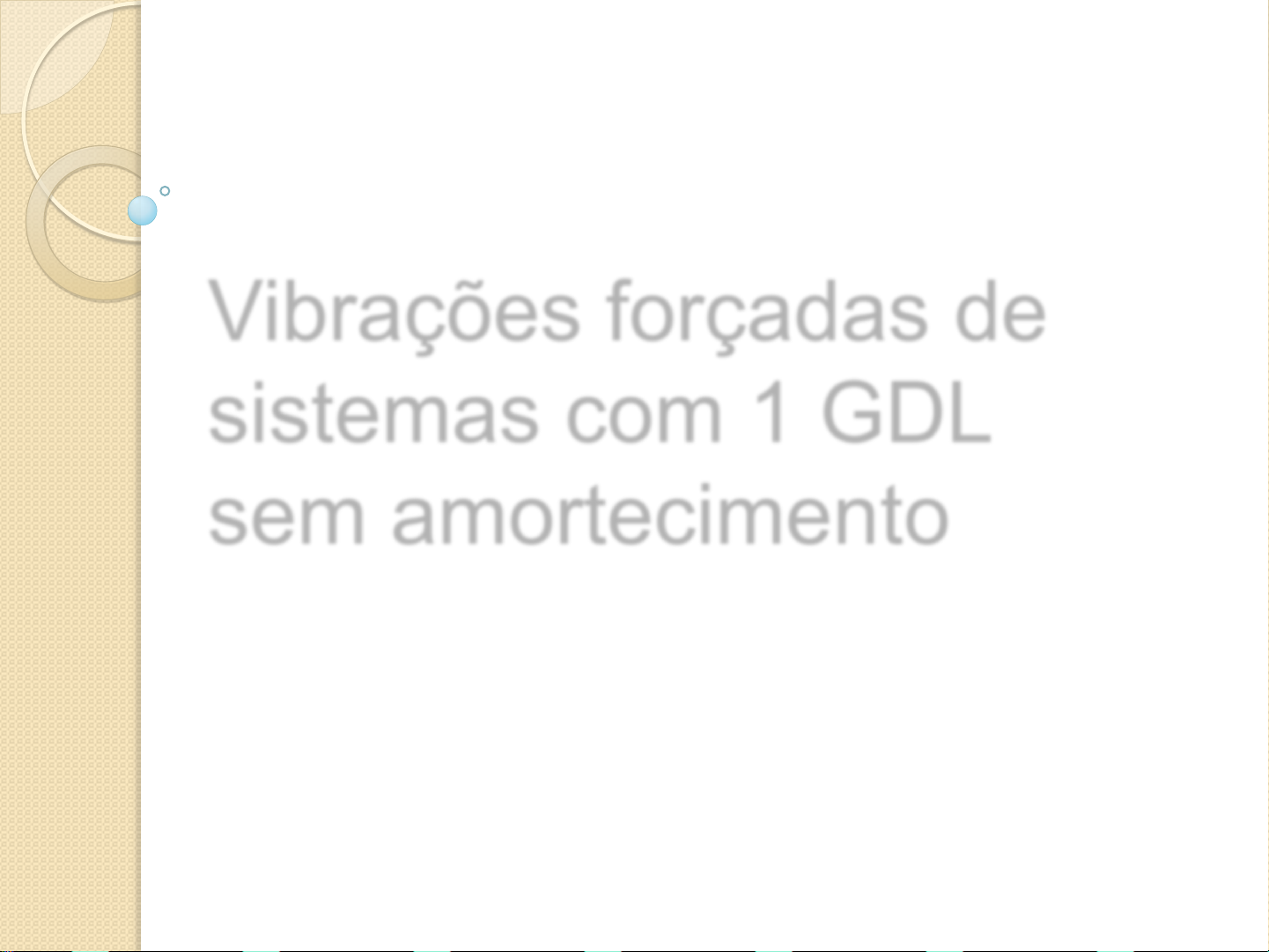 Vibrações forçadas de sistemas com 1 GDL sem amortecimento Prof. Marcos Daniel de Freitas Awruch Equação do movimento Considere o sistema massa, mola e amortecedor submetido à ação de uma força externa: Para esse problema a equação do movimento é: 𝑚𝑥 + 𝑐𝑥 + 𝑘𝑥 = 𝐹(𝑡) Ou se normalizado pela massa e reescrevendo em função de 𝜁 e 𝜔𝑛: 𝑥 + 2𝜁𝜔𝑛𝑥 + 𝜔𝑛 2𝑥 = 𝐹 𝑡 𝑚 2 Equação do movimento Essa equação do movimento é uma equação diferencial não- homogênea, cuja solução tem a forma: 𝑥 𝑡 = 𝑥𝐻 𝑡 + 𝑥𝑃(𝑡) Onde 𝑥𝐻(𝑡) é a solução homogênea e 𝑥𝑃(𝑡) é a solução particular. Note na figura abaixo que para um sistema amortecido, a solução homogênea desaparece com o tempo e a solução geral se iguala à particular. Chamamos essa resposta de estacionária. No sistema não amortecido 𝑥𝐻(𝑡) permanece e fará parte da resposta estacionária. 3 Sistema não amortecido Considerando um sistema de 1 GDL sem amortecimento submetido à uma força harmônica 𝐹 𝑡 = 𝐹0 cos 𝜔𝑡 , onde 𝜔 é a frequência de excitação da força externa. A equação do movimento para esse caso é 𝑚𝑥 + 𝑘𝑥 = 𝐹(𝑡) A forma da solução homogênea já foi vista anteriormente e é: 𝑥𝐻 𝑡 = 𝐶1 cos 𝜔𝑛𝑡 + 𝐶2sen 𝜔𝑛𝑡 Se a força 𝐹 𝑡 é harmônica, a solução particular 𝑥𝑃(𝑡) também será. Então assume-se que essa solução tem a forma: 𝑥𝑃 𝑡 = 𝑋cos 𝜔𝑡 Substituindo na equação do movimento: 𝑚𝑥 𝑃 + 𝑘𝑥𝑃 = 𝐹0cos(𝜔𝑡) −𝜔2𝑚𝑋cos 𝜔𝑡 + kXcos 𝜔𝑡 = 𝐹0cos 𝜔𝑡 −𝜔2𝑚𝑋 + 𝑘𝑋 = 𝐹0 𝑋 𝑘 − 𝜔2𝑚 = 𝐹0 4 Sistema não amortecido Então 𝑋 que é a máxima amplitude da solução particular é: 𝑋 = 𝐹0 𝑘 − 𝜔2𝑚 E a solução particular é dada por: 𝑥𝑃(𝑡) = 𝐹0 𝑘 − 𝜔2𝑚 cos 𝜔𝑡 Dividindo-se o numerador e denominador de 𝑋 por 𝑘, temos que: 𝑋 = 𝛿𝑠𝑡 1 − 𝜔2 𝜔𝑛 2 Onde 𝛿𝑠𝑡 = 𝐹0/𝑘 é o deslocamento estático. Podemos definir o fator de amplificação dinâmica: 𝑋 𝛿𝑠𝑡 = 1 1 − 𝜔2 𝜔𝑛 2 5 Fator de amplificação dinâmica O fator de amplificação dinâmica indica a relação entre a máxima amplitude da solução particular, 𝑋, e o deslocamento estático 𝛿𝑠𝑡 = 𝐹0 𝑘 que representa a extensão da mola se fosse aplicada uma força estática 𝐹0. 6 𝐹 𝑡 = 𝐹0 cos 𝜔𝑡 𝑋 𝛿𝑠𝑡 = 1 1 − 𝜔2 𝜔𝑛 2 Fator de amplificação dinâmica Note que pela expressão (ou gráfico) temos uma singularidade quando 𝜔 𝜔𝑛 = 1. Quando a frequência da força excitadora 𝜔 é igual à frequência natural do sistema 𝜔𝑛 , a amplitude do movimento 𝑋 tende ao infinito. Esse fenômeno é chamado de ressonância. Quando 0 1 o denominador será negativo, indicando que a resposta está defasada em 𝜋 rad da força excitadora. 7 Resposta do sistema A resposta final para o problema é a soma da solução homogênea e da particular, portanto: 𝑥 𝑡 = 𝐶1 cos 𝜔𝑛𝑡 + 𝐶2sen 𝜔𝑛𝑡 + 𝐹0 𝑘 − 𝜔2𝑚 cos 𝜔𝑡 As constantes 𝐶1 e 𝐶2 podem ser determinadas pelas condições iniciais 𝑥 0 = 𝑥0 e 𝑥 0 = 𝑥 0: 𝑥 0 = 𝐶1 + 𝐹0 𝑘 − 𝜔2𝑚 ∴ 𝐶1 = 𝑥0 − 𝐹0 𝑘 − 𝜔2𝑚 𝑥 0 = 𝜔𝑛𝐶2 ∴ 𝐶2 = 𝑥 0 𝜔𝑛 Assim, a solução se torna: 𝑥 𝑡 = 𝑥0 cos 𝜔𝑛𝑡 + 𝑥 0 𝜔𝑛 sen 𝜔𝑛𝑡 + 𝐹0 𝑘 − 𝜔2𝑚 cos 𝜔𝑡 − cos 𝜔𝑛𝑡 É importante observar que 𝐶1 e 𝐶2 não são iguais às da vibração livre. Apenas a forma da solução homogênea é a mesma, mas não os valores dessas constantes, como visto acima. 8 Ressonância O último termo da solução é indefinido para 𝜔𝑛 = 𝜔: 𝛿𝑠𝑡 1 − 𝜔2 𝜔𝑛 2 cos 𝜔𝑡 − cos 𝜔𝑛𝑡 = 0 0 Aplicando a regra de L’Hopital: lim 𝜔→𝜔𝑛 cos 𝜔𝑡 − cos 𝜔𝑛𝑡 1 − 𝜔2 𝜔𝑛 2 = lim 𝜔→𝜔𝑛 𝑑 𝑑𝜔 cos 𝜔𝑡 − cos 𝜔𝑛𝑡 𝑑 𝑑𝜔 1 − 𝜔2 𝜔𝑛 2 = lim 𝜔→𝜔𝑛 −𝑡 sen 𝜔𝑡 −2 𝜔 𝜔𝑛 2 = 𝜔𝑛 2 𝑡sen 𝜔𝑛𝑡 9 Ressonância Assim, para um sistema em ressonância, a resposta será: 𝑥 𝑡 = 𝑥0 cos 𝜔𝑛𝑡 + 𝑥 0 𝜔𝑛 sen 𝜔𝑛𝑡 + 𝛿𝑠𝑡𝜔𝑛 2 𝑡sen 𝜔𝑛𝑡 Fica em evidência que a resposta 𝑥𝑃 (𝑡) aumenta linearmente com o tempo: 10 Batimento Se a frequência da força de excitação é muito próxima da frequência natural do sistema, ocorre o fenômeno de batimento. A amplitude aumenta e diminui de forma regular. 𝜔𝑛 − 𝜔 = 2𝜀 11 Exemplo (Rao, ex 3.1) Um motor de 60 kg é instalado em uma viga bi-engastada de módulo de elasticidade de 210 GPa. Durante a operação, o motor induz na viga uma força harmônica 𝐹 𝑡 = 2000 cos 62𝑡 N. Determine a amplitude de vibração da solução particular. Inicialmente montamos um sistema equivalente com 1 GDL. O momento de inércia e a rigidez equivalente da viga são: 𝐼 = 𝑏ℎ3 12 = 0,05 0,012 3 12 = 7,2 ∙ 10−9 m4 𝑘𝑒𝑞 = 192𝐸𝐼 𝐿3 = 192 210 ∙ 109 7,2 ∙ 10−9 2,5 3 = 18580 N/m 12 Exemplo (Rao, ex 3.1) A amplitude de vibração da viga correspondente a solução particular pode ser calculada por: 𝑋 = 𝐹0 𝑘𝑒𝑞 −𝜔2𝑚 = 2000 18580 − 62 2 60 = −0,0094 m O sinal negativo indica que 𝑥𝑃(𝑡) não está em fase com 𝐹(𝑡). A frequência natural do sistema é 𝜔𝑛 = 𝑘 𝑚 = 18580 60 = 17,597 rad/s 13 Exercício 1) Utilizando algum software plotar as curvas de 𝑥𝑃(𝑡), 𝑥𝐻(𝑡) e 𝑥𝑡 𝑡 = 𝑥𝑃 𝑡 + 𝑥𝐻(𝑡) para o exemplo do slide anterior. Plotar a curva de 𝐹(𝑡) e indicar se está em fase com 𝑥𝑃(𝑡). Para essa a