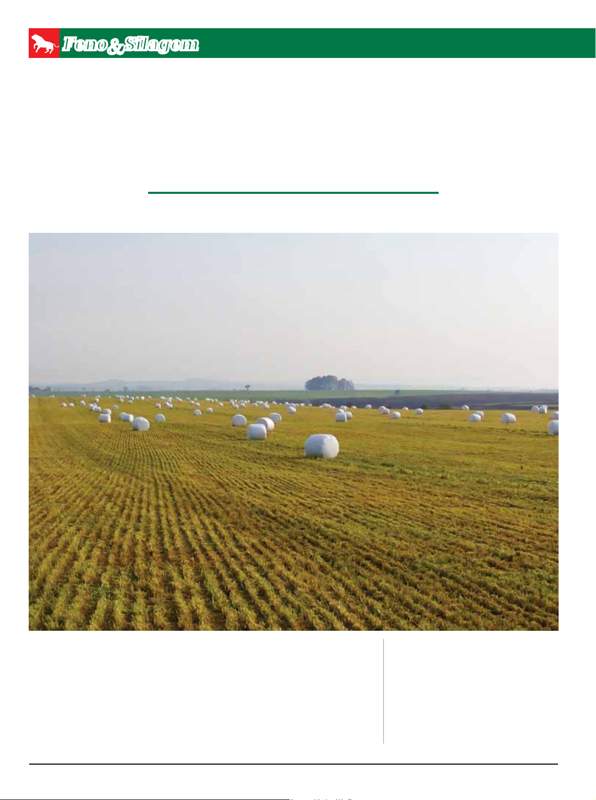 20 - JULHO 2019 O MarteloFeno&Silagem Julia Abud Lima*, Júlio Barcellos**, Danielle Brutti*** HAYLAGE Não é silagem nem feno, é feno-silagem, um método intermediário de conservação de forragem Um recurso só deve ser economizado ou guardado quando ele existir, e a forragem não é diferente. Portanto, sempre que o pecuarista dispor de um ali- mento para o seu gado, deve racionalizar o uso, de forma a gerar sobras para perío- dos de escassez. Além disso, gerar exce- dentes de forma planejada, ou até mesmo o cultivo específico de uma determinada forragem para uso futuro, pressupõem a utilização de técnicas de conservação. Isso ocorre porque armazenar forragens que contêm alto teor de água e compo- nentes que podem deteriorar-se antes do consumo pelos animais constitui o princi- pal desafio de qualquer sistema de produ- ção na pecuária de corte. Nesse sentido, a ensilagem e a fenação são os principais métodos de conservação das forragens utilizadas na alimentação do gado de cor- te. Assim, têm-se os produtos silagem e feno, mensalmente tratados nesta seção da Revista AG, e, relembrando: fenação é o processo de conservação do pasto pela desidratação e ensilagem é o processo de conservação por meio da acidificação, re- sultado da fermentação anaeróbica. Além desses métodos, surge uma ter- ceira opção – amplamente difundida nos EUA e na Europa – denominada de feni- Fo to s: D iv ul ga çã o REVISTA AG - 21 lage, feno-silagem, pré-secado ou haylage (termo em inglês). Esse método de con- servação está baseado em um processo in- termediário entre a ensilagem e a fenação, reunindo princípios de desidratação parcial (pré-secagem) e fermentação anaeróbica (rolos plastificados). Como justificativa técnica para esse processo, ao invés dos tradicionais já descritos, destaca-se a pos- sibilidade de realizar a operação mecânica mais rápida do que a fenação, muito impor- tante frente a restrições climáticas (chuvas e dias úmidos), as quais limitam a fenação; o uso de plantas em estádios mais ricos em folhas verdes, armazenamento no local de fornecimento (vantagem em relação ao silo trincheira) e, ainda, um material de quali- dade, muitas vezes, superior ao feno tradi- cional. Obviamente que incorpora maiores custos com equipamentos, combustíveis e operacionais, quase assemelhando-se à en- silagem. De um modo geral, a elaboração de pré-secados, ocorre a partir de gramí- neas tropicais ou temperadas, de alto valor nutricional e com potencial de fermentação, como aveia, azevém, tifton, Brachiarias e milheto, ou de le- guminosas como a alfafa e os trevos. Todas essas plantas forrageiras podem ser enfenadas, mas, nesse processo de conservação, ocorrem perdas consi- deráveis, seja pela etapa mecânica do corte e a formação do rolo de feno, par- tindo de uma planta em que a relação folha:caule já diminuiu devido ao avanço no estádio fenológico, seja pe- las perdas durante o armazenamento e a distribuição. Todas essas situações são minimizadas na produção da haylage, pois pode-se utilizar forrageiras com um teor de umidade mais elevado, melhor relação folha:caule e, ainda, um tipo de conservação na qual o rolo é envolvido e protegido por uma película de polietileno (filmes plásticos). 22 - JULHO 2019 Feno&Silagem A técnica da pré-secagem possibilita a ensilagem de plantas forrageiras com baixo teor de matéria seca, em um pro- cesso razoavelmente simples, no qual fermentações indesejáveis são controla- das através da diminuição da atividade de água ou elevação da pressão osmótica. Uma vez determinado o momento para a colheita, o corte das plantas não deve ser feito muito rente ao solo, preferen- cialmente a 15 cm de altura, evitando-se impurezas (folhas e hastes mortas, solo) no material que será elaborado. Após o corte, há uma pré-secagem ou emurche- cimento por, aproximadamente, de três a cinco horas, enleiramento e elaboração do rolo e seu envolvimento no plástico. A partir desse momento, os rolos podem ser armazenados e, decorridos 15 a 20 dias, estão aptos para o fornecimento aos animais. A operacionalidade do pré-secado, quando se destina à produção de rolos, é similar à da produção do feno, mas pode existir uma técnica semelhante como se fosse ensilagem, com a forragem picada e compactada em um silo tipo “trincheira ou torta” ou, ainda, em bolsas tipo “silo bag”. Neste texto, cabe ressaltar que es- tamos tratando exclusivamente do pré- secado na forma de rolo, como se fosse um feno com alta umidade. Em síntese, a haylage, aqui denominada rolo ou pré-se- cado, além de todas as etapas da fenação – o feno exige maior tempo de secagem da forragem cortada –, inclui a vedação completa, por meio de um envoltório plástico aplicado por equipamentos espe- ciais acoplados à enfardadeira. A decisão pela fenação ou pré-seca- do vai depender, a priori, da existência de equipamentos apropriados para a proteção do rolo e do momento do corte da planta, pois, dependendo das condições climáticas e do estádio fenológico desta, poderá ser decidido por um ou outro método de con- servação (feno ou haylage). Se a planta esti- ver muito matura e o clima, favorável (seco e com presença de sol), poderá ser elabora- do o feno, mas, quando a planta é jovem e o clima permite, o destino poderá ser o pré- secado. Assim, é um processo que se inicia com a escolha da planta no melhor estádio de composição nutricional do que para fe- nação, em geral, resultando em um produto mais nutritivo aos animais, fato que é difícil de atingir na produção de feno. O padrão de fermentação do pré-se- cado é diferente da silagem, pois é menos intenso devido a menor presença de subs- tratos fermentáveis. Contudo, o resultado é satisfatório, tendo, inclusive, possibilidade de maior consumo pelos animais compa- rado à silagem e ao feno. P
